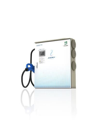 They differ based on the output power: 15kW [SERA-15], 30kW [SERA-30], 50kW [SERA-50], 120kW (2 outlets total) [SERA-120], and 150kW [SERA-150]. All products are compliant with CHAdeMO standard.