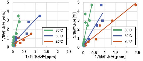 図6 1/油中水分と1/紙中水分の関係
