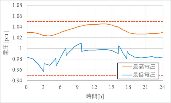 図3 フィーダ1の電圧変動解析結果