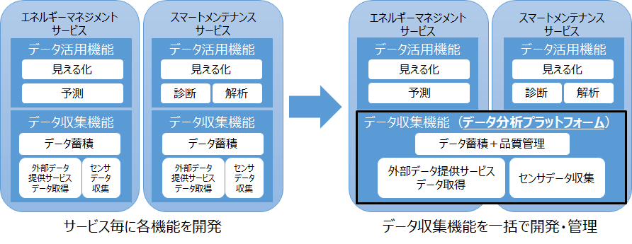 今回開発したデータ分析プラットフォームは、サービスごとに開発していたデータ収集・蓄積の機能を汎用化する基盤システムです。
