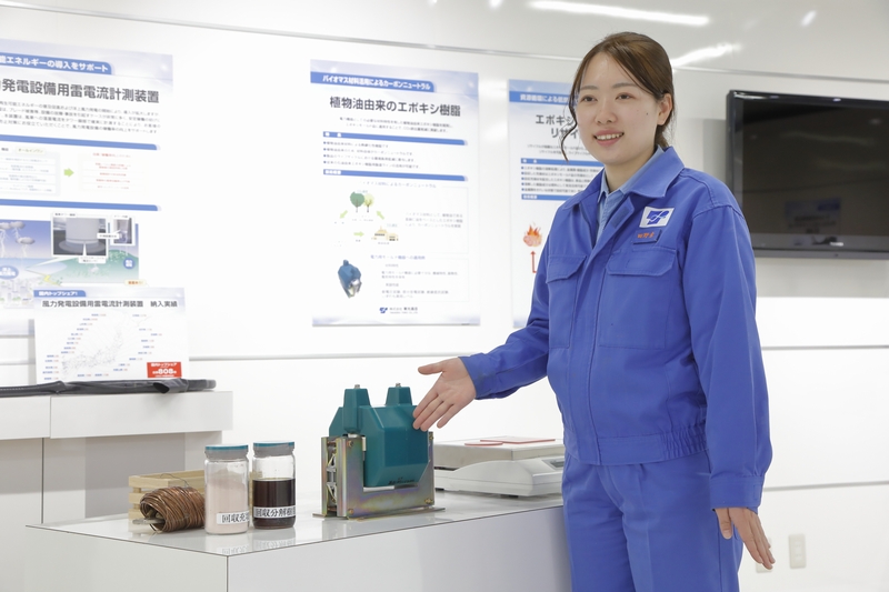 田野倉エポキシモールド機器の低炭素化に向けた取り組みの中で、私はバイオマス材料(植物由来の材料)をベースとした樹脂開発を担当しており、バイオマス材料の選定から試作、評価までを進めています。